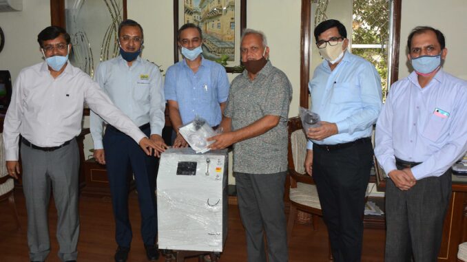 जयपुर। मुख्य सचिव निरंजन आर्य को रविवार को यहां शासन सचिवालय में भारतीय उद्योग परिसंघ (सीआईआई) ने 100 ऑक्सीजन कॉन्संट्रेटर भेंट किए।