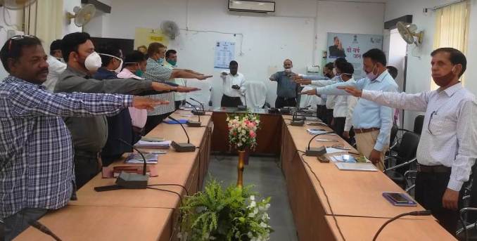 सवाई माधोपुर। विश्व जल दिवस के अवसर पर कलेक्ट्रेट सभागार में अतिरिक्त जिला कलेक्टर डॉ सूरज सिंह नेगी एवं जिला परिषद के मुख्य कार्यकारी अधिकारी रामस्वरूप चौहान ने उपस्थित अधिकारियों एवं कार्मिकों को जल संरक्षण की शपथ दिलाई। इस मौके पर कार्मिकों एवं अधिकारियों ने जल संरक्षण, जल की बूंद बूंद का उपयोग करने, पानी को अनमोल संपदा मानते हुए इसका उपयोग करने तथा पानी को सहेजने के लिए कार्य करने की शपथ ली। इस मौके पर एसडीएम कपिल शर्मा, सीएमएचओ, पीआरओ, अधीक्षण अभियंता जन स्वास्थ्य अभियांत्रिकी, जयपुर विद्युत वितरण निगम, पीडब्ल्यूडी, जिला शिक्षा अधिकारी सहित अन्य अधिकारी एवं कर्मचारी उपस्थित थे। इसी प्रकार जन स्वास्थ्य अभियांत्रिकी विभाग के अधीक्षण अभियंता कार्यालय में भी अधिकारियों एवं कर्मचारियों को जल संरक्षण की शपथ दिलाई गई।