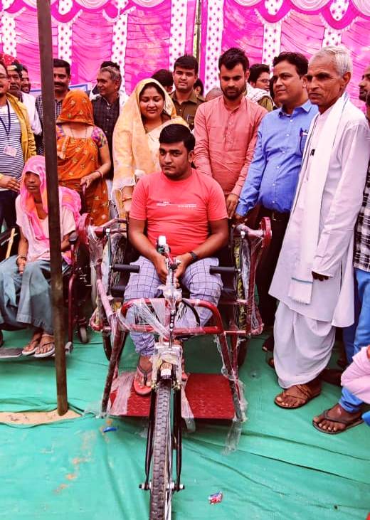 इसी प्रकार दयाल बाई पत्नी गिरधारीलाल स्वामी उम्र 58 वर्ष निवासी शाहपुरा जस्टाना की भी मुख्यमंत्री विशेष योग्यजन पेंशन योजना में पेंशन स्वीकृत कर व्हील चैयर वितरित की गई। इससे पूर्व शिविर में ही मेडिकल जॉंच करवा कर दयाल बाई का विशेष योग्यजन प्रमाण पत्र तैयार करवाया गया। पीपलदा निवासी 28 वर्षीय सुनील कुमार योगी पुत्र रामजीलाल योगी को भी ट्राई साइकिल वितरित की गई। इन दोनों लाभार्थियों ने प्रशासन गांवों के संग अभियान चलाने के लिये मुख्यमंत्री श्री अशोक गहलोत का आभार प्रकट किया तथा कहा कि ‘‘आज हमारा काम हुआ, हम बहुत खुश हैं।’’